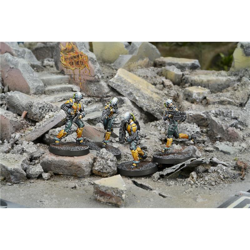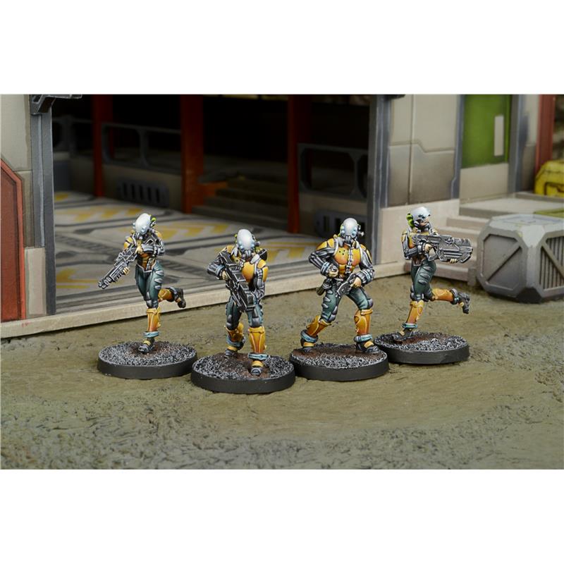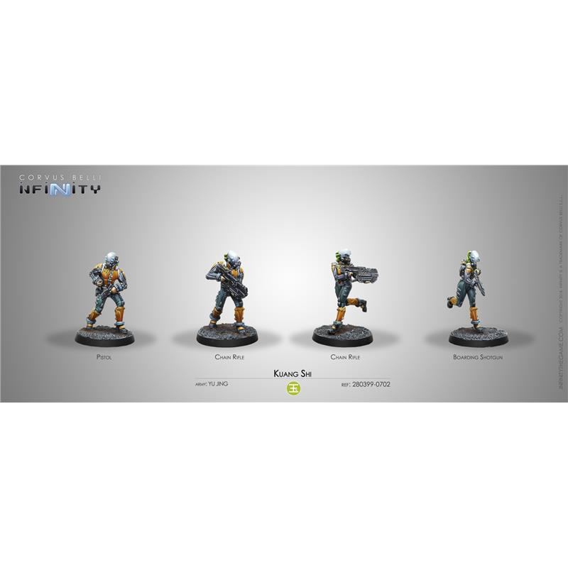 Sale Info: This box includes four miniatures: Two Kuang Shi with Chain Rifle, one Kuang Shi with Boarding Shotgun and one Kuang Shi with Pistol. This box is a perfect complement to the Imperial Service, Yu Jing Sectorial Starter Pack (REF. 280384-0583) and allows players to create a Kuang Shi Fireteam.
