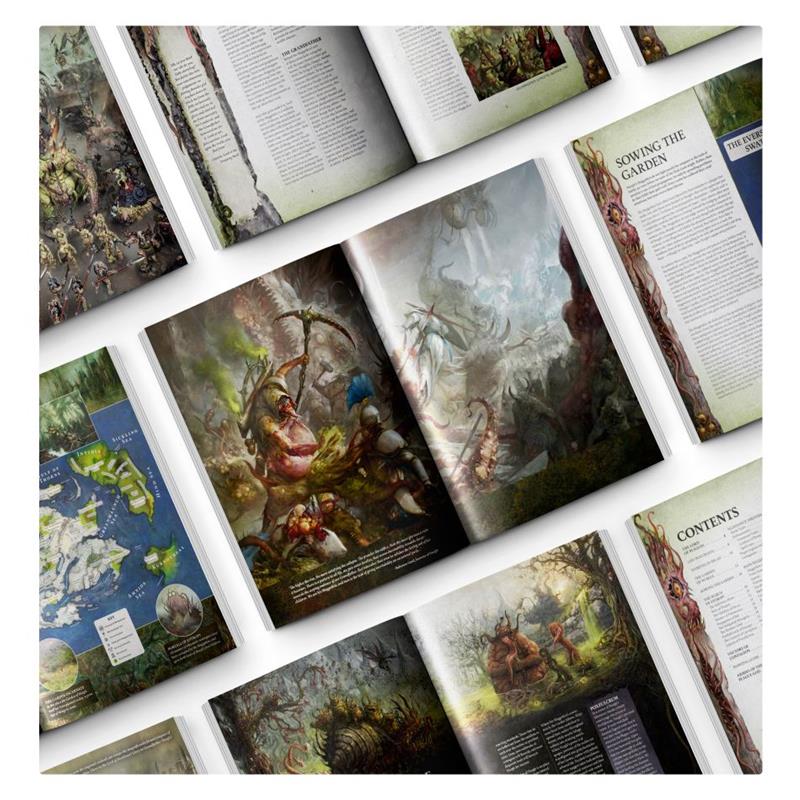 - A pestilent bounty of lore and background information all focussed on Grandfather Nurgle and the daemons and mortals that live only to spread his poxes