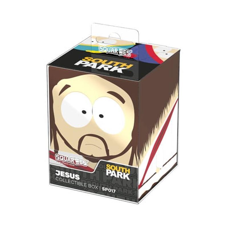 Collectible box for storing TCG decks, tabletop gaming accessories, and/or collectibles. The Jesus Squaroe from the South Park edition holds up to 100 cards in double protective sleeves if used as a deck box. Squaroes are made from 78% renewable resources and fit perfectly into the separately available Collectors Case.