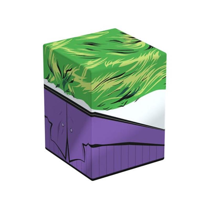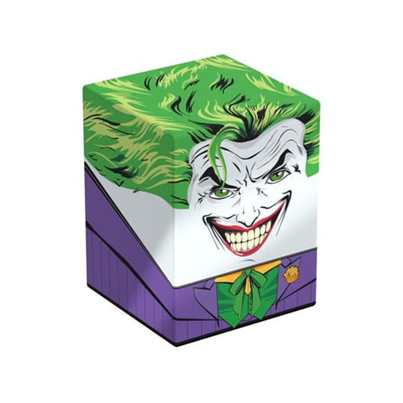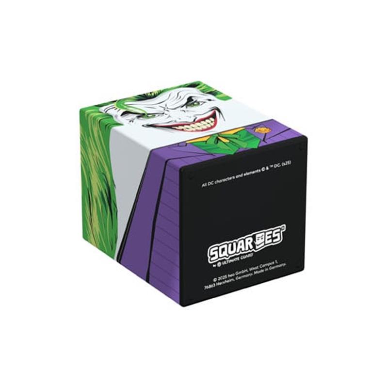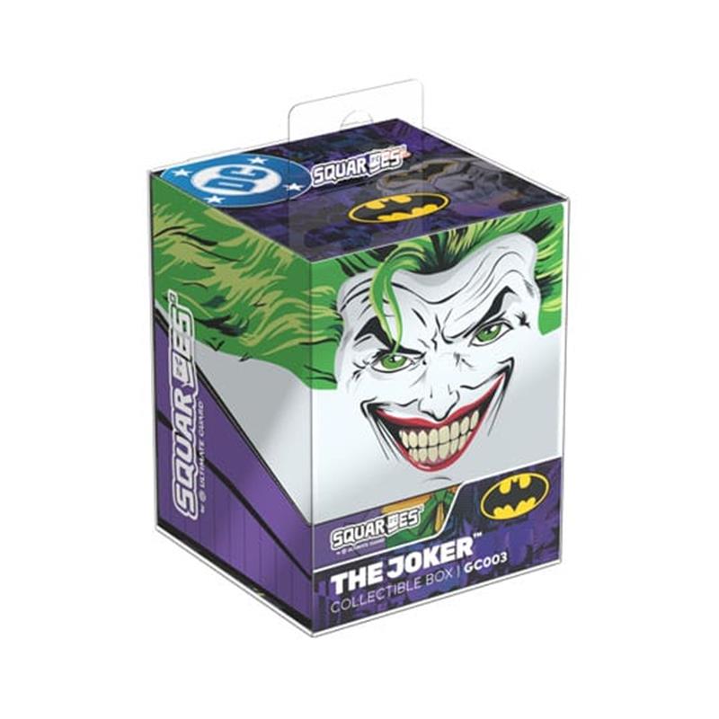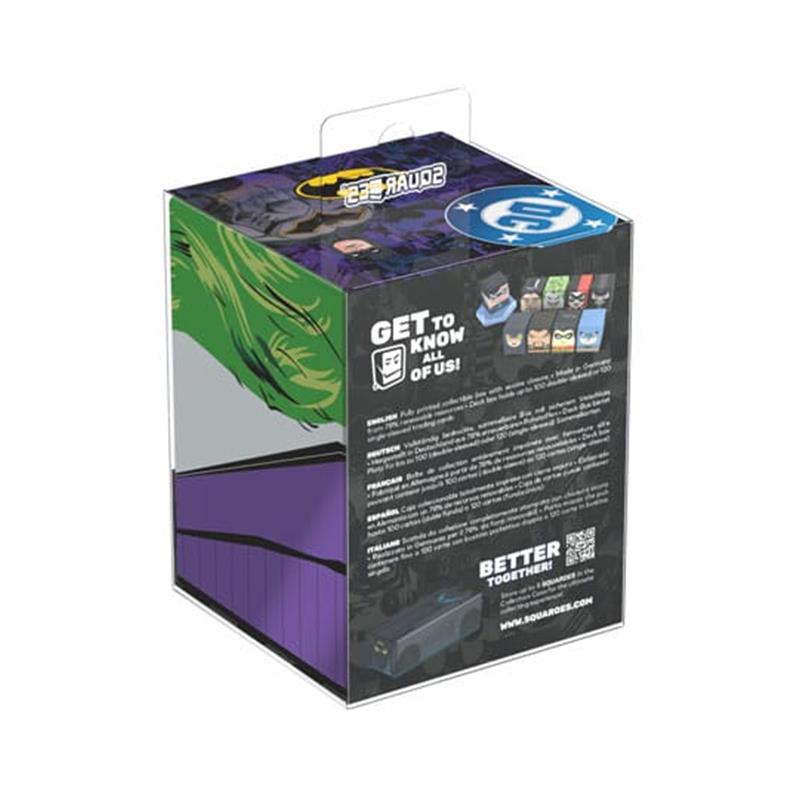 Collectible box for storing TCG decks, tabletop gaming accessories, and/or collectibles. The Joker Squaroe from the Batman: Gotham City edition holds up to 100 cards in double protective sleeves if used as a deck box. Squaroes are made from 78% renewable resources and fit perfectly into the separately available Collectors Case.