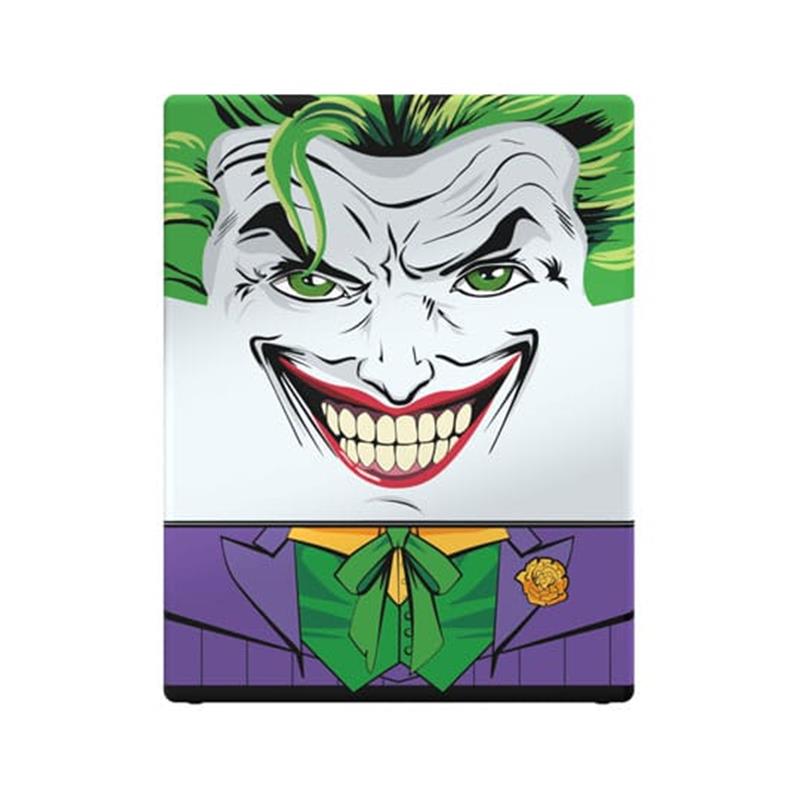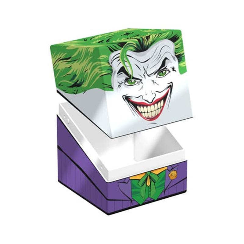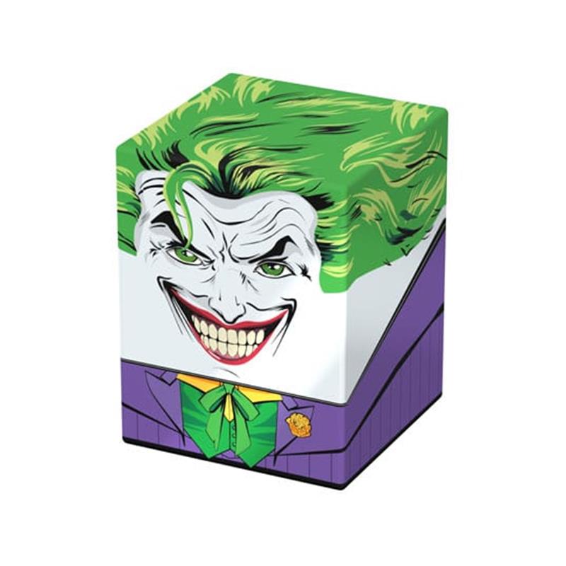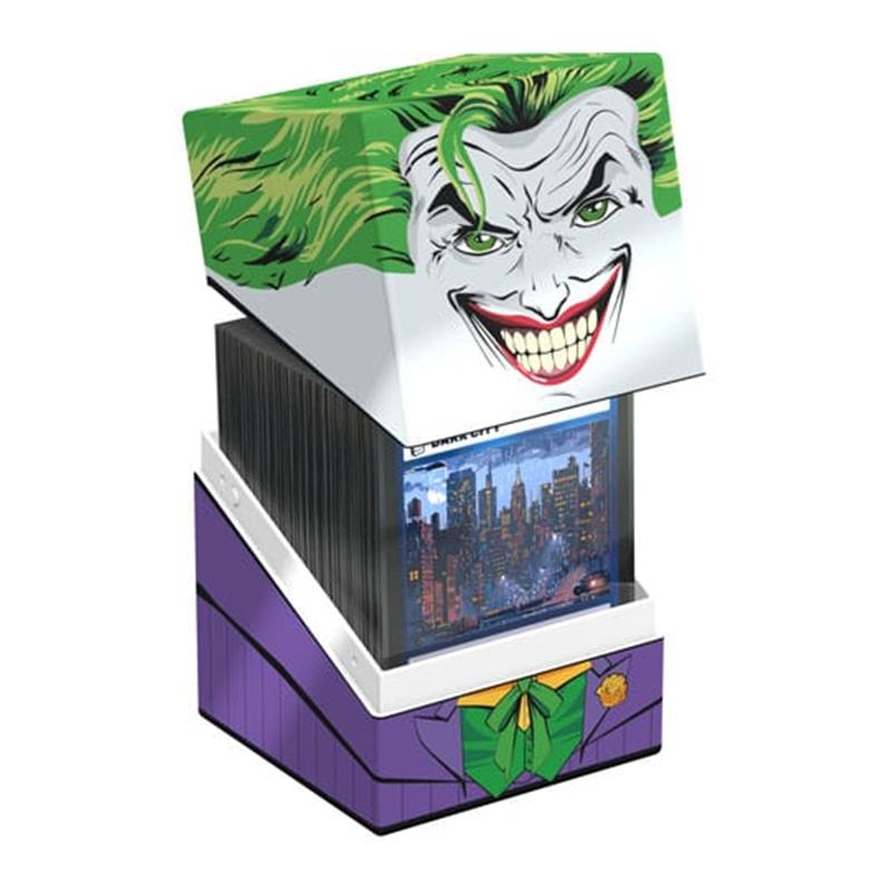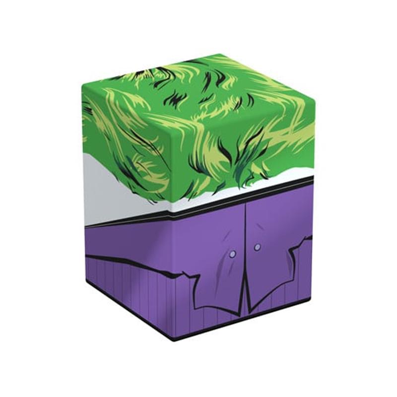 Collectible box for storing TCG decks, tabletop gaming accessories, and/or collectibles. The Joker Squaroe from the Batman: Gotham City edition holds up to 100 cards in double protective sleeves if used as a deck box. Squaroes are made from 78% renewable resources and fit perfectly into the separately available Collectors Case.