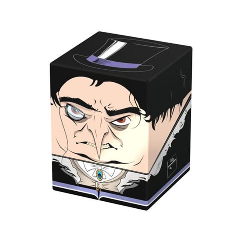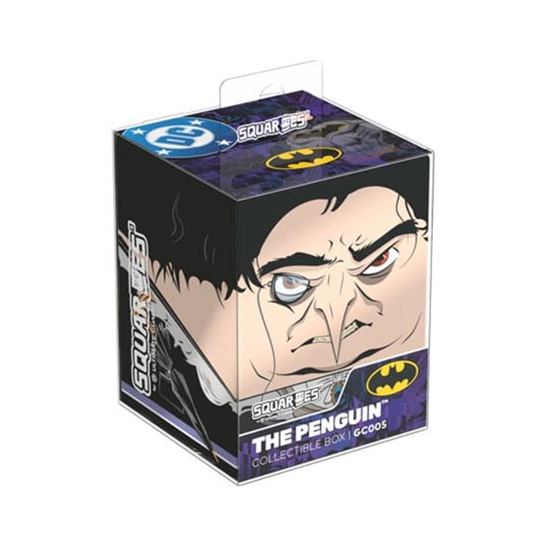 Collectible box for storing TCG decks, tabletop gaming accessories, and/or collectibles. The The Penguin Squaroe from the Batman: Gotham City edition holds up to 100 cards in double protective sleeves if used as a deck box. Squaroes are made from 78% renewable resources and fit perfectly into the separately available Collectors Case.