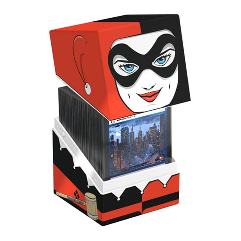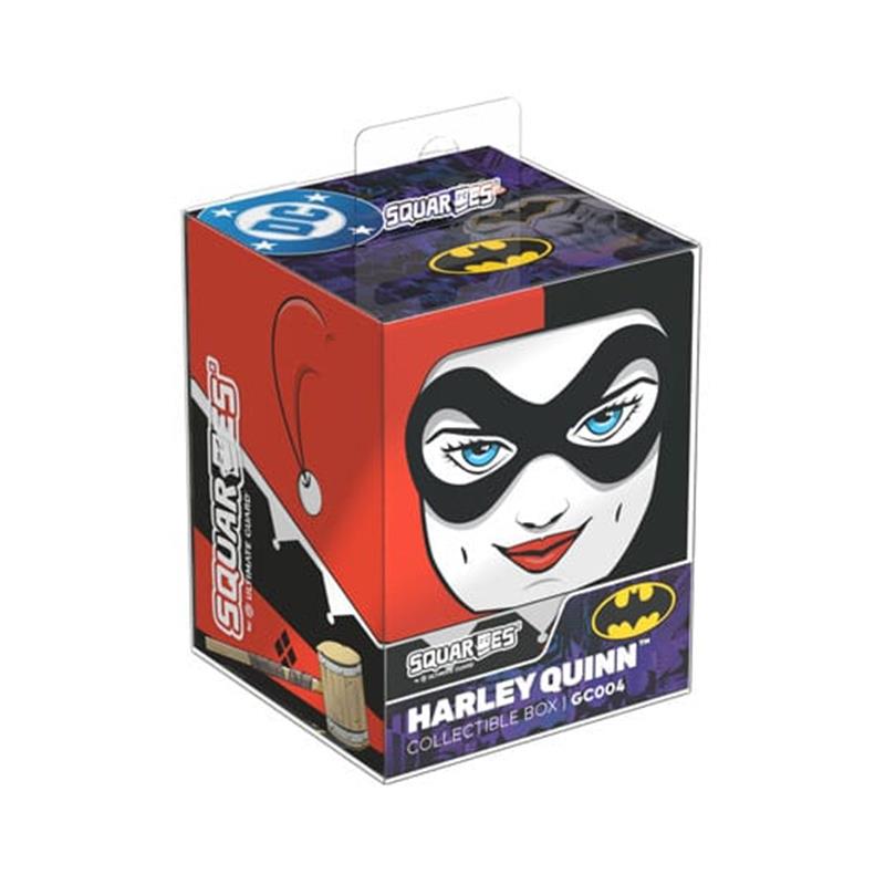 Collectible box for storing TCG decks, tabletop gaming accessories, and/or collectibles. The Harley Quinn Squaroe from the Batman: Gotham City edition holds up to 100 cards in double protective sleeves if used as a deck box. Squaroes are made from 78% renewable resources and fit perfectly into the separately available Collectors Case.