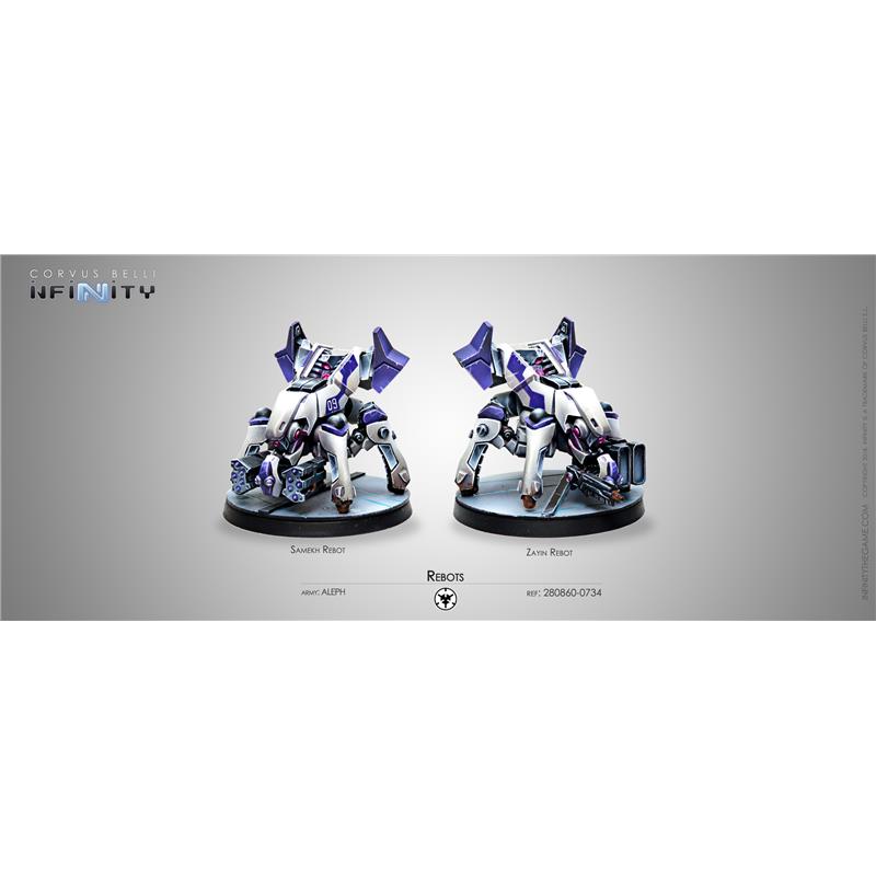 obiettivi.Informazioni di Vendita: Scatola con due miniature e le opzioni per coprire tutti i profili delle truppe. I Rebots sono dispositivi versatili in grado di completare una vasta gamma di compiti di combattimento in base all'equipaggiamento di cui sono dotati.