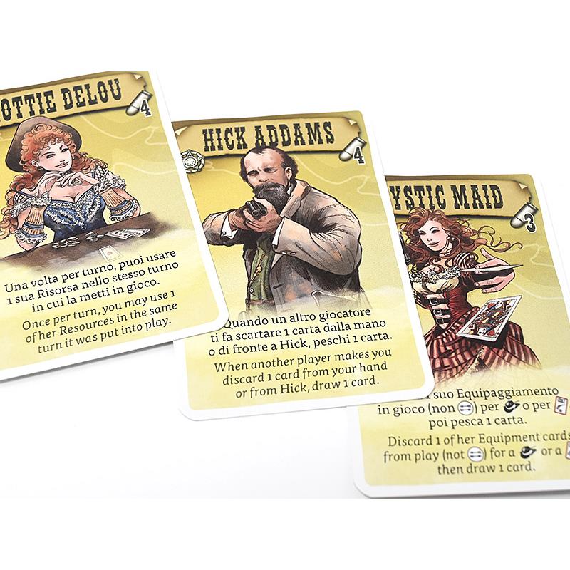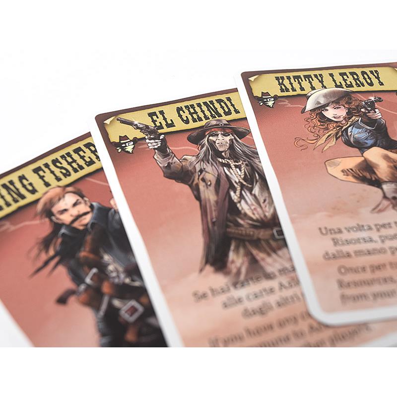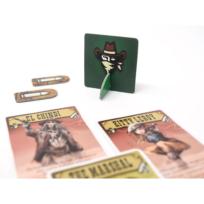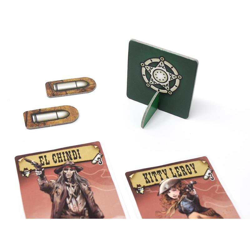 Contents: 40 playing cards, 12 characters, 10 bullet tokens, 1 “active character” token, rulebook.