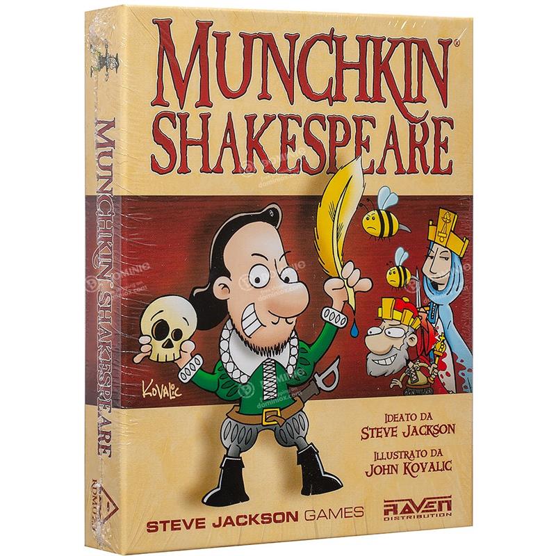 Munchkin - Shakespeare is a Shakespeare-themed edition of one of the greatest classic card games in party game format. This version draws heavily from the literary works of the renowned English writer, so you will find enemies and equipment from that universe, while still maintaining the humorous illustrations of John Kovalic and the amusing tone of some of the cards.