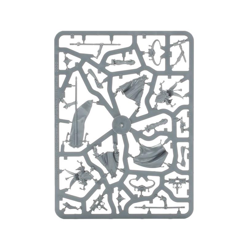 With this kit, you can assemble 5 Alarith Stoneguard, with options for a Standard Bearer and a Truestone Seneschal. You can choose to equip each warrior with a stone mace or a diamond-tipped hammer, and the Truestone Seneschal can wield a pair of sediment hammers. The kit consists of 63 plastic components and includes 5 round bases of 32mm.