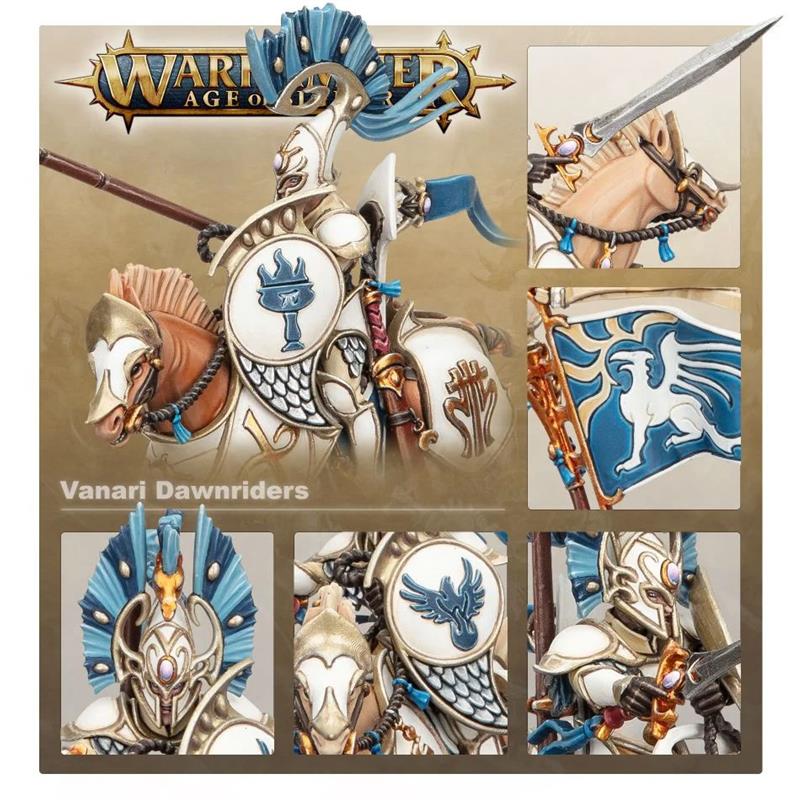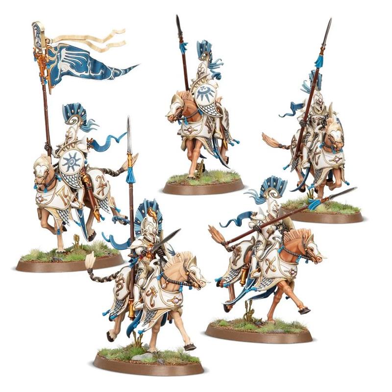 The Vanari Dawnriders are an anti-infantry shock cavalry, ideal for mowing down hordes of skeletons, grots, and anyone else unfortunate enough to block their path! They are perfect for carving a path through enemy lines or using their superior speed to flank opposing ranks and strike vulnerable warmachines and wizards in the rear.