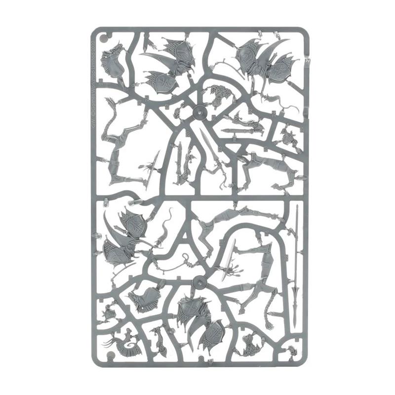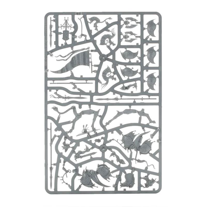 With this kit, you can assemble 5 Vanari Dawnriders, with options to assemble one Steedmaster and one Standard Bearer. The interchangeable shields and crests allow you to customize your models. The kit is made up of 79 plastic components and includes 5 oval bases measuring 60mm x 35mm.