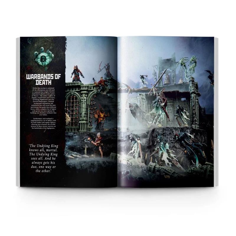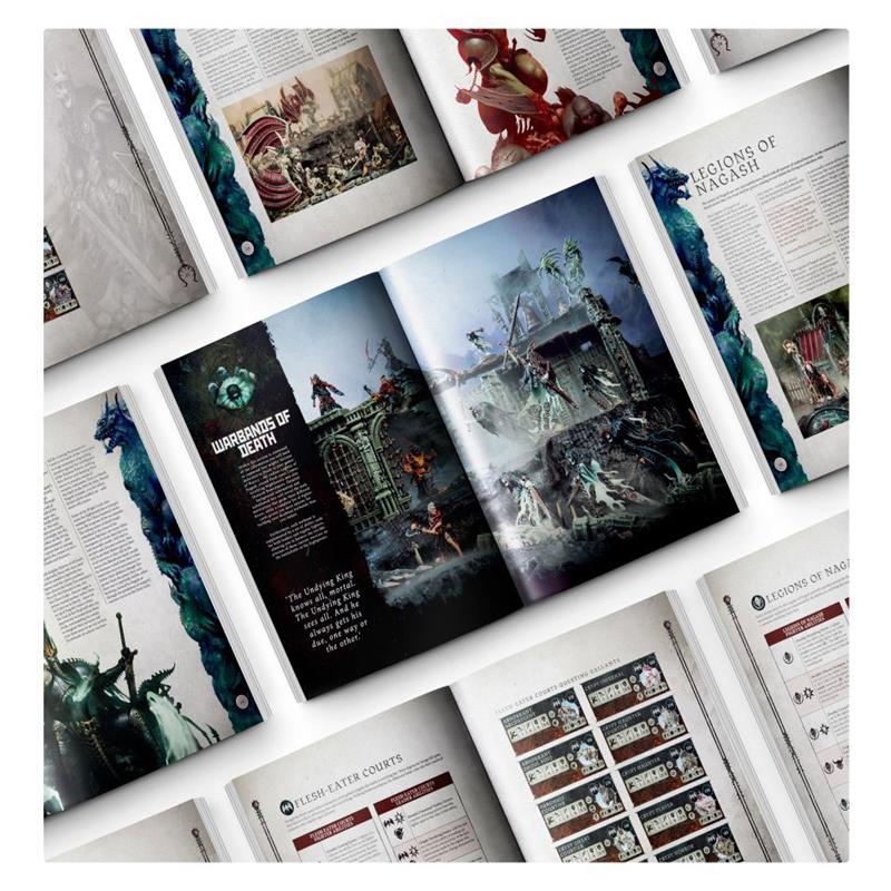 - The complete rules for the following warbands: Flesh-eater Courts, Legions of Nagash, Nighthaunt, and Ossiarch Bonereapers.