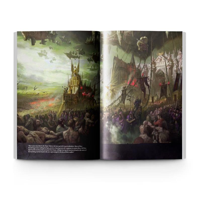 Discover the history of the Mortal Realms in the first section of the book dedicated to the background, which contains the detailed and illustrated account of the events that have unfolded so far, from the arrival of the God-King of humanity to the savage Age of Beasts. It covers three main eras: