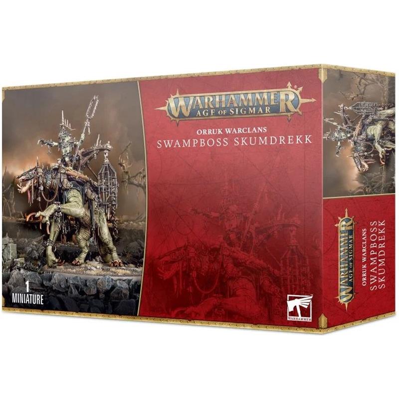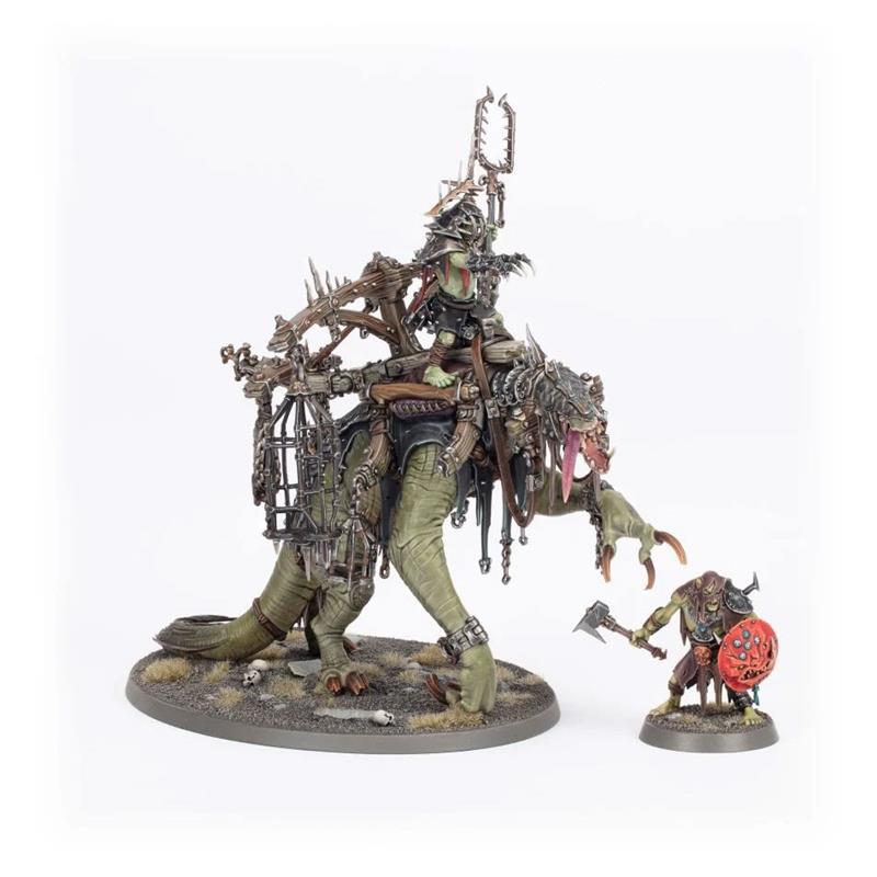 Of all the Kapiammukkia, Skumdrekk is the most cruel and cunning. As a result, he has become something of a celebrity among the Krudelazzi of Ghur. He is the owner of the Grandescuro Menagerie, a gigantic mangrove swamp that he uses as a prison for dozens of dangerous and exotic beasts. In battle, he rides the prey he is most proud of, Kela Viscida, an incredibly fierce slime-dragon beast that he subdued when he was still a young orruk.