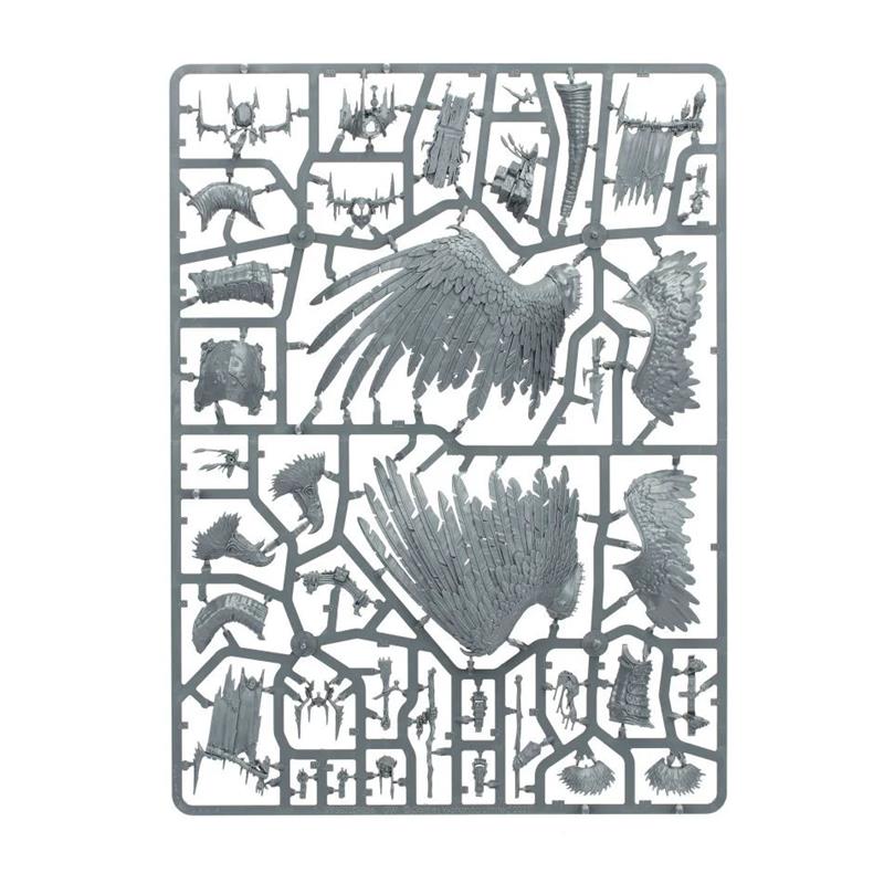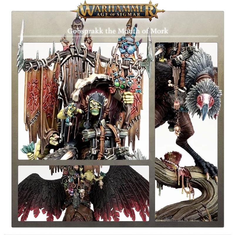 In battle, Gobsprakk soars through the sky on his Kondor Ztraziakorpi, the bloodthirsty Bekko Azzazzino. From this vantage point, he is able to roar orders to the orruk under his command and cast curses and spells to slow down and damage enemies.