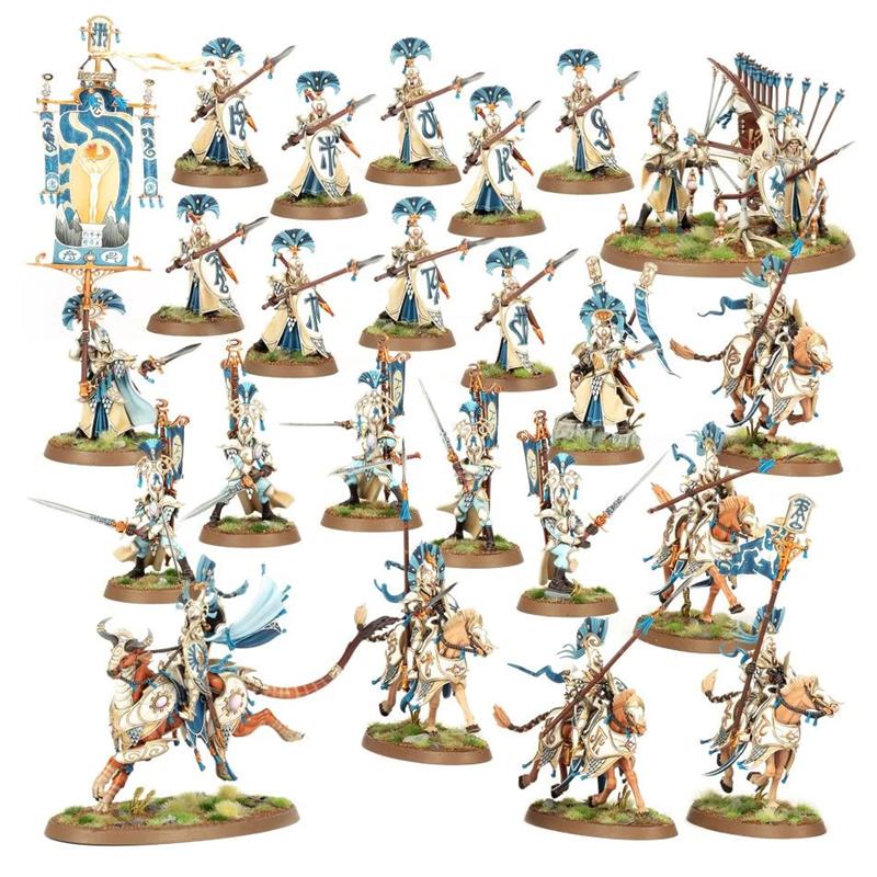 Graceful in mind and body, the Lumineth Realm-lords are the epitome of the aelf race. They speak eloquently and master the arcane arts with supreme skill, as the Ten Paradises of Hysh have granted them a razor-sharp intellect. The Lumineth consider themselves the most advanced living beings of all, and they would be pleased to dedicate their entire lives to their fields of interest, but after the crisis of the Age of Chaos, they realized it is necessary to take up arms in defense of the Mortal Realms to prevent the cosmos from being torn apart by the Dark Gods.
