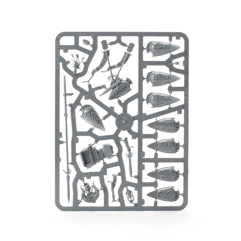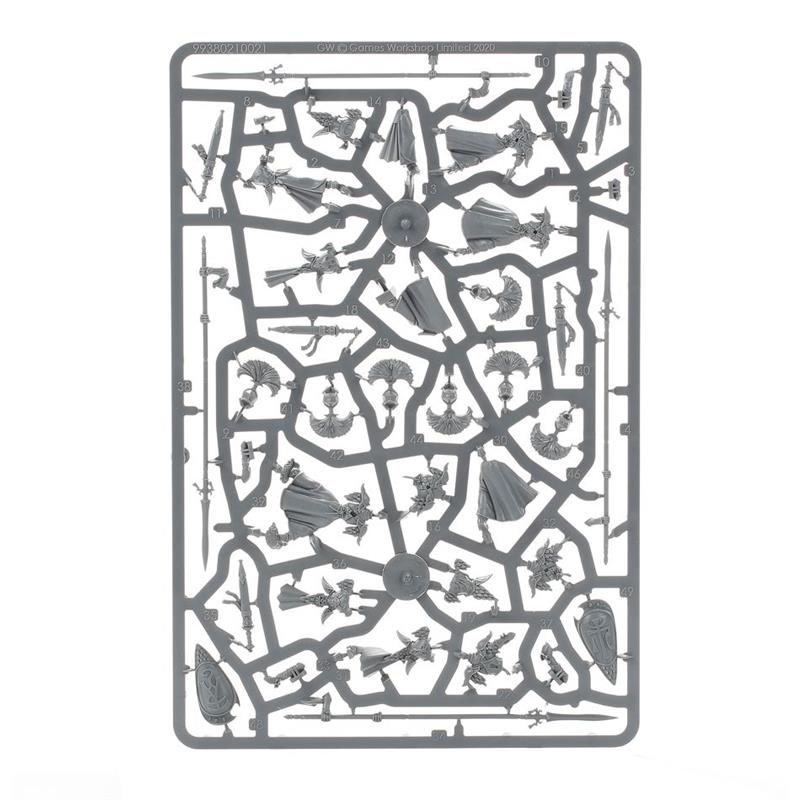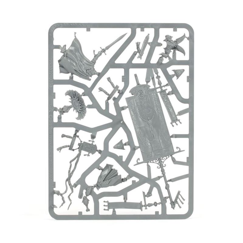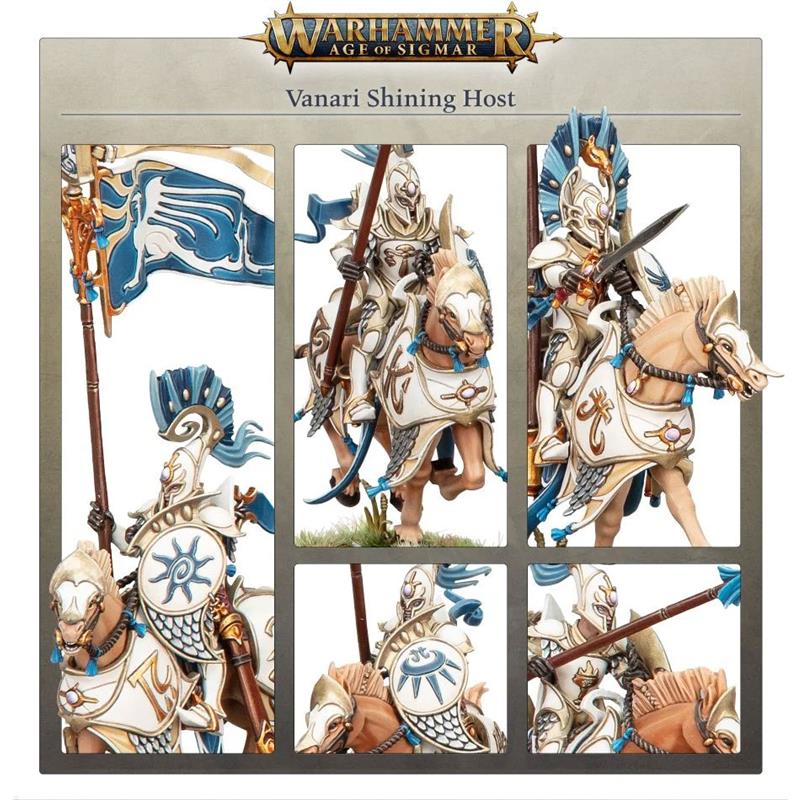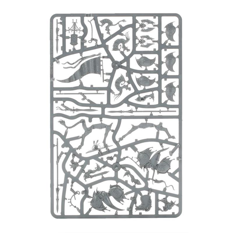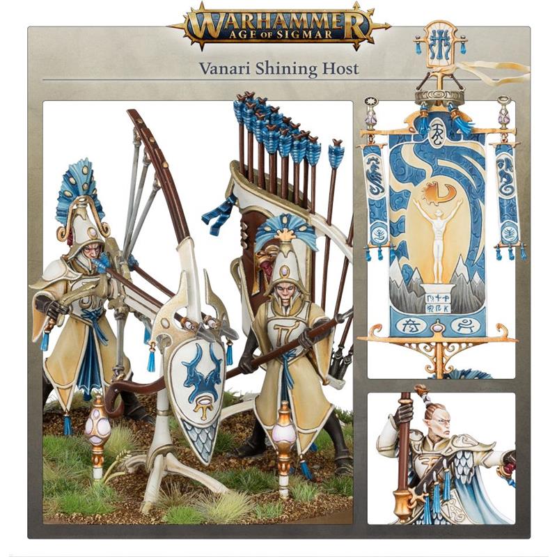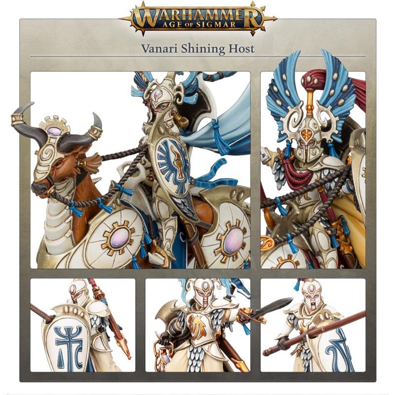 Destroy enemies with the unmatched precision of a Starshard Ballista, shielded by the impenetrable wall of shields provided by the Auralan Wardens, while a Vanari Bannerblade heralds the arrival of the highly skilled Vanari Bladelords. Meanwhile, a Vanari Lord Regent can lead a squadron of Vanari Dawnriders into battle. This box provides you with a whole army capable of fighting simultaneously on all fronts.