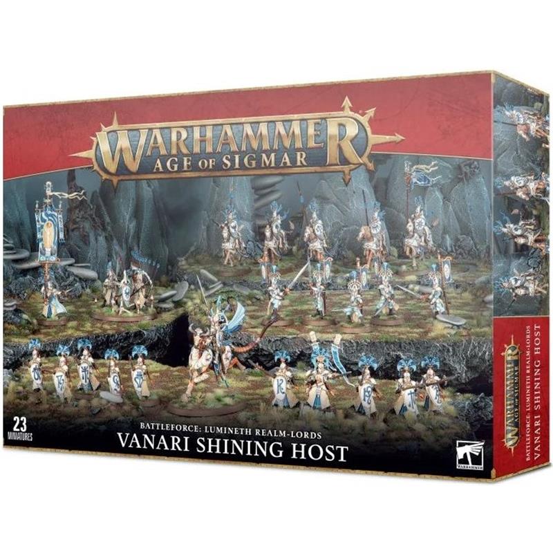 The Radiant Host are the steel blades of the Lumineth. Their determination is unwavering and their skill in battle has been honed to perfection. They strike with the supernatural elegance of the masters of Hysh. Wielding swords and magic with perfect symmetry, the martial forces of the Lumineth Realm-lords are unparalleled, and with this Battleforce you will be able to command an entire Vanari Radiant Host.