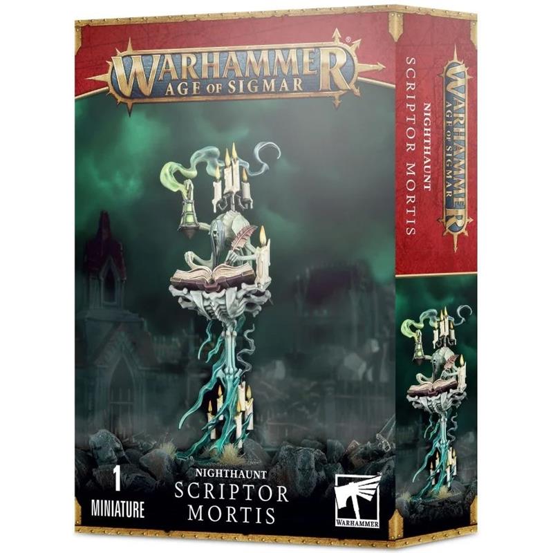 With this multi-part plastic kit, you can assemble a Scriptor Mortis, an evil Hero for the Night Haunters armies. Surrounded by burnt candles and the vapors of a spectral lantern, this resentful and vengeful scholar floats before an ornate skeletal lectern, and is a perfect leader for your spectral hordes. The Scriptor Mortis can condemn enemy Heroes to eternal punishment, inflicting a curse that draws closer as the battle progresses. When surrounded by friendly Night Haunters, he can also defend himself from dangers by transferring damage to his subordinates.