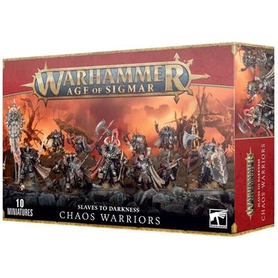 This multi-part plastic kit allows you to assemble 10 Chaos Warriors, the armored core of the Eternal Chosen's legions. Each warrior, as skilled in defense as he is terrifying in assault, carries a runic shield of Chaos and can be armed with a deadly weapon of your choice from sword, axe, mace, or hammer, or with a magical halberd. The kit also contains the components to assemble an Aspiring Champion with a unique lethal weapon and a choice of special heads, as well as a Hornblower and a Standard Bearer with a choice of two banners and two Chaos sigils.
