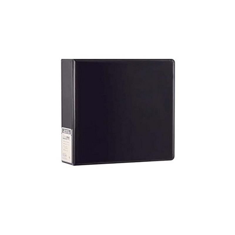 Premium album for standard size pages with plain black cover. Reinforced 2" D-ring with booster for quick loading of pages. Albums include rich foam padding. Constructed with clear indexing slot on the spine for easy organization.