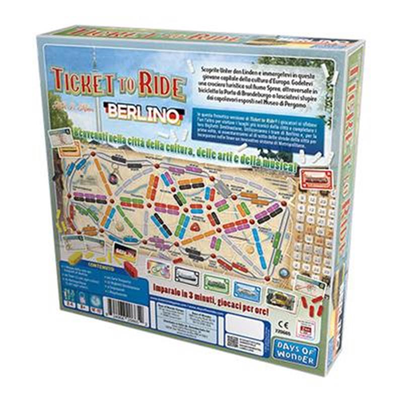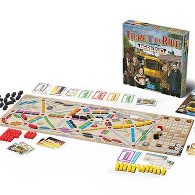 Contents: 1 Map of Berlin's transport network, 44 Trams (11 of each color), 20 Subways (5 of each color), 44 Transport Cards, 22 Destination Tickets, 4 Scoring Markers, 1 Rulebook.