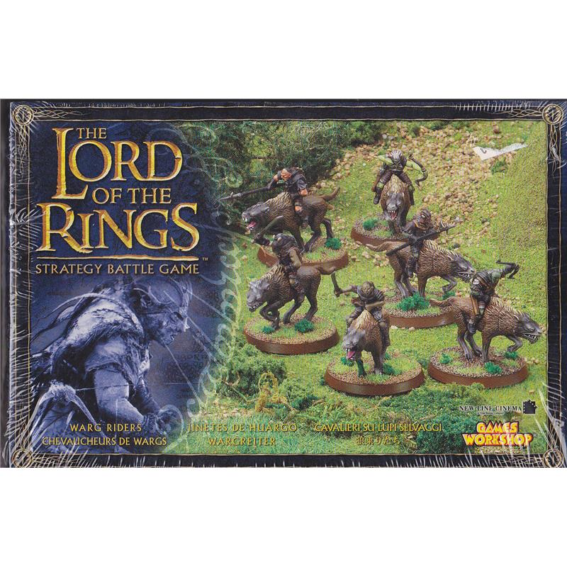 The Wargs are enormous evil wolves, gigantic ferocious creatures, imposing and dangerous, equipped with a keen ruthless intelligence. The Warg Riders scout far ahead of the main armies of Orcs and other evil beings, probing the ground and capturing those who lag behind. In battle, the Wargs swarm towards the enemy in large packs, devastating the foe with bestial fury.